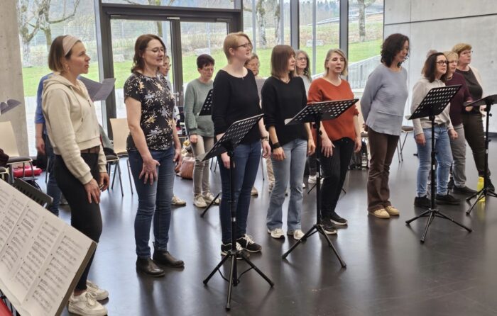 Die Sängerinnen und Sänger der Vöhringer Voices und die weiteren Gäste aus dem Verband arbeiteten an Haltung, Atmung und am Kontakt zum Publikum, um die Distanz zum Zuhörer zu überwinden und Emotionen authentisch zu vermitteln.